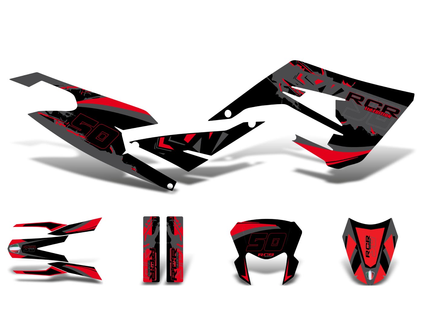 samolepky sada čierno-červeno-šedá lesklá pre Gilera RCR 50 2018-