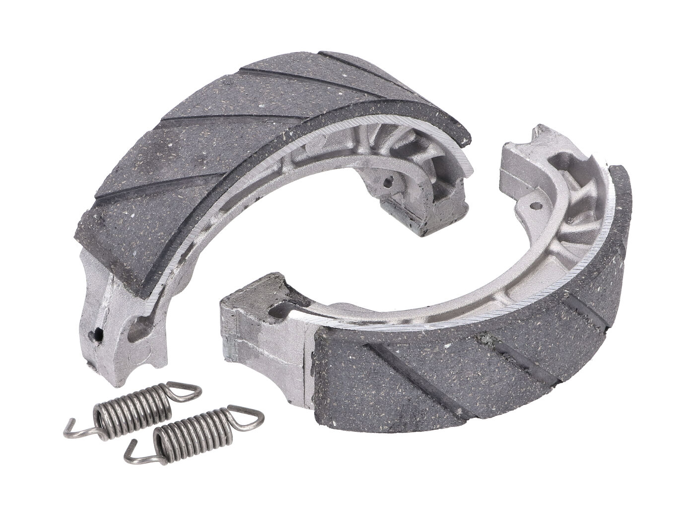Sada brzdových čeľustí s rebrovaným povrchom. Rebrovaná časť zabraňuje nadmernému hromadeniu usadenín brzdového prachu, ktoré vo všeobecnosti vedú k zaskleniu a nedostatku výkonu v bežnejších topánkach. Brzdný výkon zostáva konštantný aj pri dlhších cestách v daždi. Topánka je o niečo mäkšia ako kevlarové alternatívy, ale za normálnych jazdných podmienok to vedie k lepšej odozve brzdenia spolu s vyššou mierou opotrebovania. Dodávka obsahuje sadu pružín. Rozmery: 110 x 25 mm Všeobecne sa používa pre zadné brzdové bubny. Na nasledujúcich modeloch je možné topánky použiť vpredu=F alebo vpredu a vzadu F/R: Aprilia Amico 50 bis 1993 F/R Honda Lead 50 F Kymco Agility Basic 50 F/R Kymco DJ 50 F Kymco DJ 50 Refined F Kymco Filly 50 F/R Kymco MXU 50 F Kymco MXU 150 F MBK Booster bis 1994 F/R Peugeot Ludix 50 Tromm el/Tromm el F/R Peugeot Zenith 50 F/R Yamaha BW`s 50 bis 1994 F/R