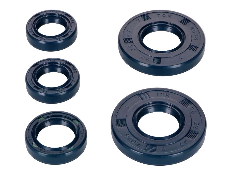 Súprava olejového tesnenia TCK vhodná pre Simson Moped / Mokick S50, SR4-1, SR4-2, SR4-3, SR4- 4, KR51/1 Schwalbe, Star, Sperber, Spatz, Habicht. Rozsah dodávky podľa vyobrazenia na obrázku produktu.