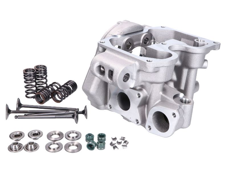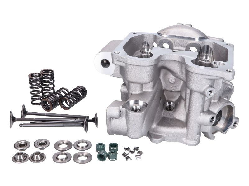 Naraku 4-ventilová hlava valcov v overenej kvalite s veľkými 19mm a 22mm ventilmi pre valce do priemeru 55mm vhodná pre Yamaha X-Max, YZF, WR 125cc a mopedy s typmi motora YI-3 OHC.Originálne vahadlá je možné použiť ďalej a nie sú súčasťou dodávky.Obsah dodávky:hlava valca2 sacie ventily2 výfukové ventily4 pružiny ventilov4 tesnenia drieku ventiludrobné diely