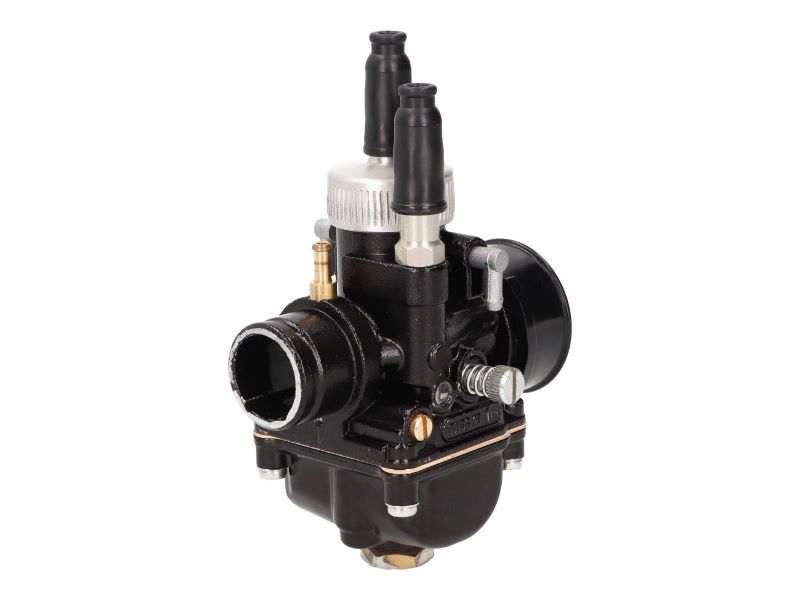 Závodné karburátory Dellorto PHBG 19DS Black Edition. Tento karburátor si zaslúži označenie Racing. Mnohé funkcie sú prispôsobené potrebám ambicióznych tunerov. Skrutkovací kovový uzáver karburátora - ručný káblový sýtič - kovová plaváková misa so skrutkou pod sedlom trysky umožňujúca rýchly prístup k hlavnej tryske bez demontáže. Vo všeobecnosti sú 19 mm sacharidy vhodné pre všetky tuningové aplikácie s objemom 70 cm3. Ľahko vyladiteľná kabína v obvyklej kvalite Dellorto. Vákuový port a olejový terminál tiež umožňujú použitie samostatného mazania olejovým čerpadlom. Pripojenie motora: 25 mm pripojenie vzduchového filtra strana: 32 mm (bez adaptéra) 38 mm (s adaptérom) hlavná tryska: M5 # 75 voľnobežná tryska: M5 # 45 tryska sýtiča: M5 # 60 Plaváky: 9450.1 posúvač karburátora 30 (kovová verzia) výber ihly: W9 Jet: M6 262AN