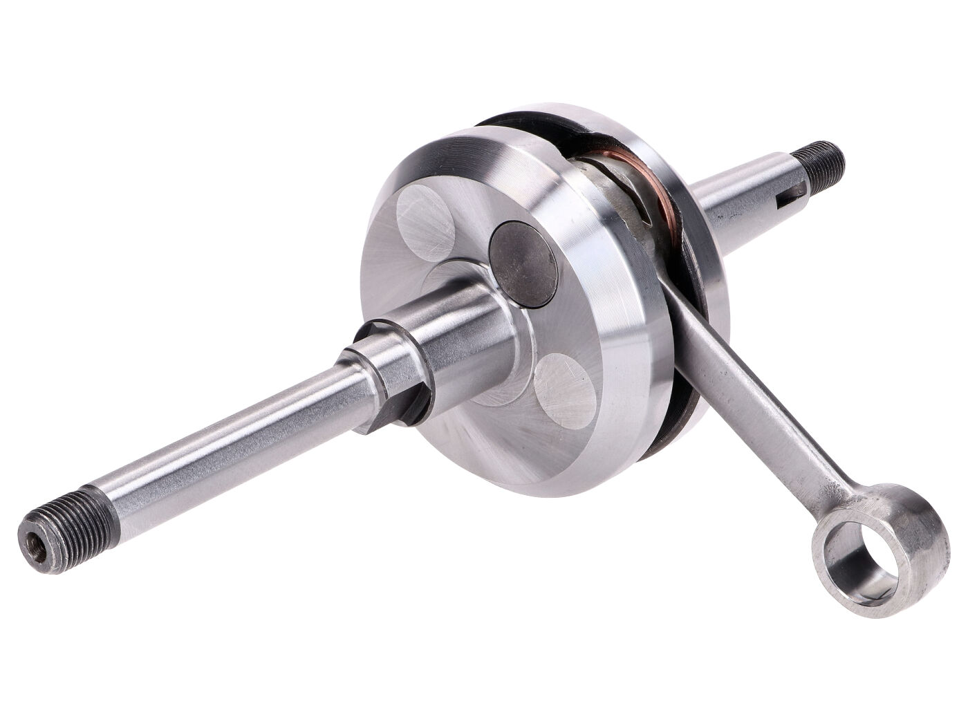 Vysoko kvalitný pretekársky kľukový hriadeľ od Airsal v špičkovej kvalite s 2 prídavnými vyvažovacími závažiami vhodný pre moped Peugeot 103 s veľkým kužeľom pre elektronické zapaľovanie (motor SP / MVL s 50ccm valcom). Priemer 40mm . Zdvih a dĺžka ojnice zodpovedajú pôvodným rozmerom. Vďaka prídavným závažiam je tento kľukový hriadeľ ideálny pre tuning alebo pretekanie..Technické údaje:Zdvih: 39,1mm Celková dĺžka lícneho čapu na strane zapaľovania: 70mm .Celková dĺžka lícneho čapu na strane spojky: 97,8mm .Priemer 1. ramena (spojka bočnej lícnice) : 22mm Priemer 2. osadenie (lícny čap na strane spojky): 10mm Závit na strane zapaľovania: M10x1Závit na strane spojky: M11x1Súčasťou dodávky je zosilnené ihlové ložisko 12x15x15mm .
