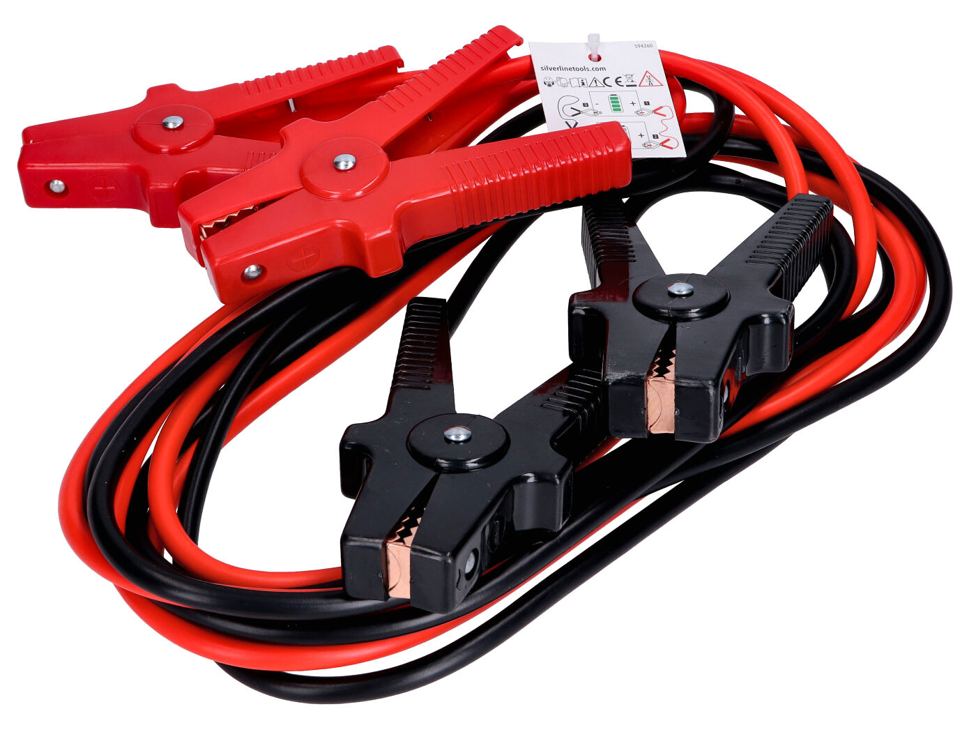Štartovacie káble pre vozidlá so štartovacím výkonom batérie do 150A. Štartovací kábel je izolovaný PVC a vybavený plne izolovanými pružinovými svorkami / konektormi. Meria 2,5 min. Dodávané ako na obrázku produktu. Dodáva sa pár štartovacích káblov.