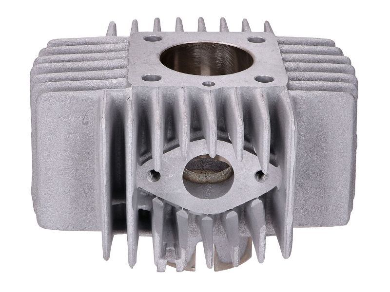Súprava pretekárskych valcov 50cc s 38mm vhodná pre Puch Maxi S, N, X30 Sport NS, NL, X30 Sport NG-2A a Supermaxi. Chladiace rebrá majú originálnu veľkosť a pôvodné označenie CH12" je zaliate. Úpravy v porovnaní s originál: Veľkoryso prefrézované tesniace plochy na saní a výfuku (možno namontovať 28 mm potrubie) Piest neprečnieva Vylepšené tesnenie nasávania Aby sa predišlo hromadeniu tepla, tento pretekársky valec by mal byť poháňaný 22 mm výfukom (2-oblúkové / 22 mm potrubie) Rozsah dodávky ako na obrázku produktu. Návod na správnu montáž a zabehnutie valca je súčasťou súpravy. Dodávka bez hlavy valca."