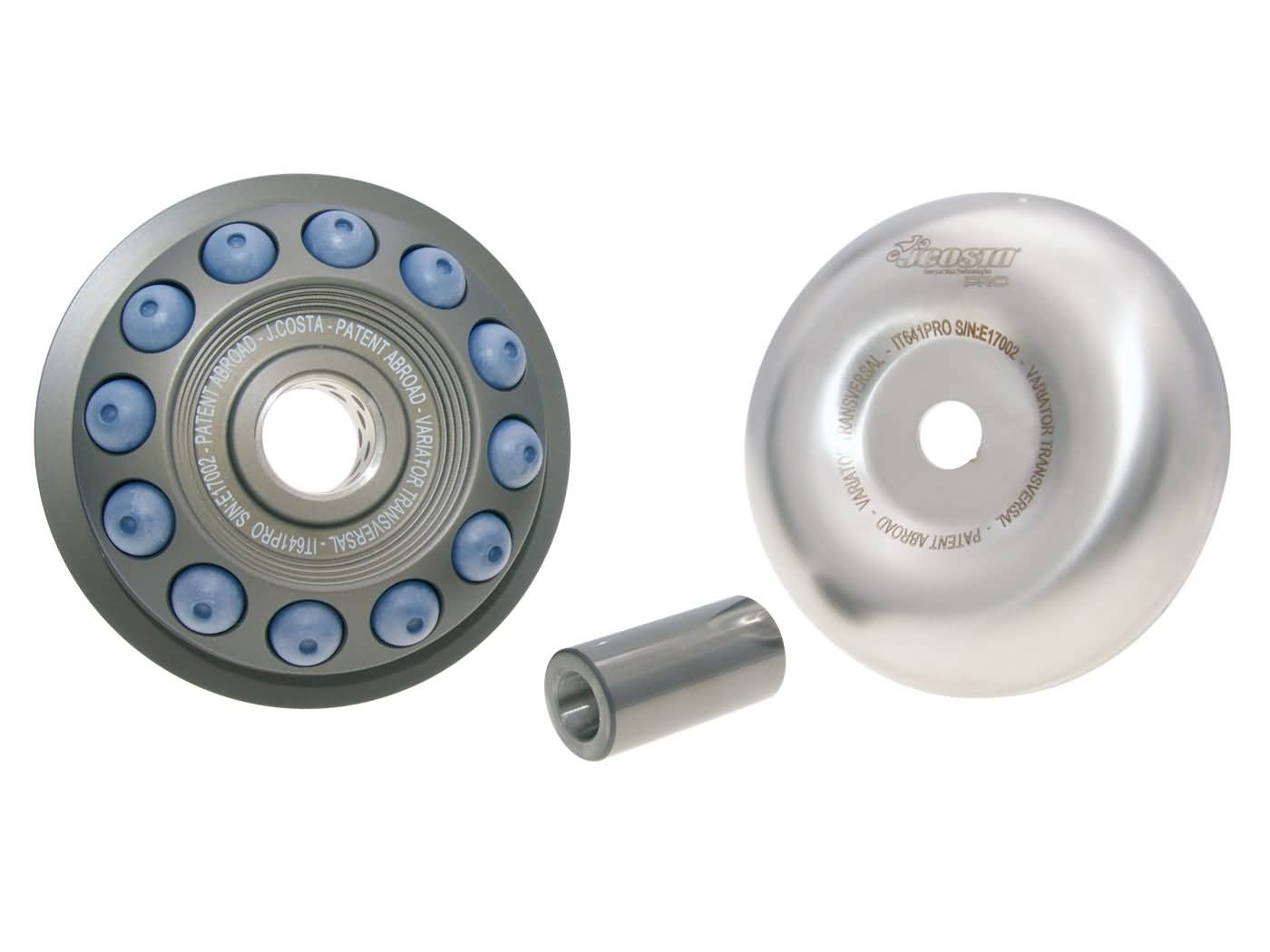 Vysokokvalitná súprava variátora od J Costa. Vylepšená ťažná sila / zrýchlenie a rýchlosť inovatívneho, ale osvedčeného konceptu variátora J. Costa je perfektná pre maxi kolobežky. Patentovaný variátor je tiež pomerne ľahko vyladený tak, aby vyhovoval veľkým kolobežkám. Súčasný výkon motora nie je ovplyvnený. Variátory J Costa používajú špeciálne závažia J. Costa, ktoré sa kĺžu namiesto štandardného rolovacieho typu, ktorý pomáha pri lineárnom otváraní variátora a je „tajomstvom“ zlepšeného výkonu. Celkovo táto súprava poskytuje rýchlejšie zrýchlenie pri nižších otáčkach a vyšší pomer v hornej časti, čím sa zvyšuje maximálna rýchlosť. Tento variátor využíva špeciálne závažia valcov J.Costa. Priemer: 16 mm Dĺžka: 25 mm Hmotnosť: 8,5 g Množstvo: 12 kusov