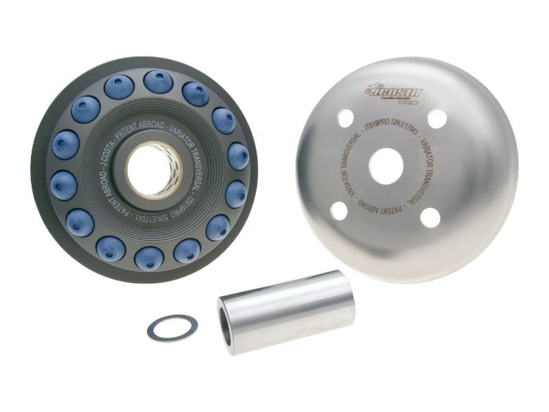 Vysokokvalitná súprava variátora od J Costa. Vylepšená ťažná sila / zrýchlenie a rýchlosť inovatívneho, ale osvedčeného konceptu variátora J. Costa je perfektná pre maxi kolobežky. Patentovaný variátor je tiež pomerne ľahko vyladený tak, aby vyhovoval veľkým kolobežkám. Súčasný výkon motora nie je ovplyvnený. Variátory J Costa používajú špeciálne závažia J. Costa, ktoré sa kĺžu namiesto štandardného rolovacieho typu, ktorý pomáha pri lineárnom otváraní variátora a je „tajomstvom“ zlepšeného výkonu. Celkovo táto súprava poskytuje rýchlejšie zrýchlenie pri nižších otáčkach a vyšší pomer v hornej časti, čím sa zvyšuje maximálna rýchlosť. Tento variátor využíva špeciálne závažia valcov J.Costa. Priemer: 16 mm Dĺžka: 31 mm Hmotnosť: 17 g Množstvo: 14 kusov